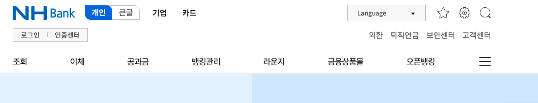 농협 인터넷 뱅킹에 들어가면 위의 화면이 제일 먼저 보이실텐데요.