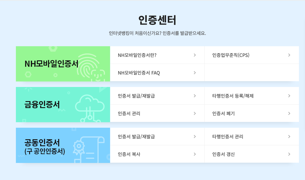 은행의 역할은 공동인증서를 발급받을 수 있도록 인터넷뱅킹을 신청해드리는 것으로 끝납니다.